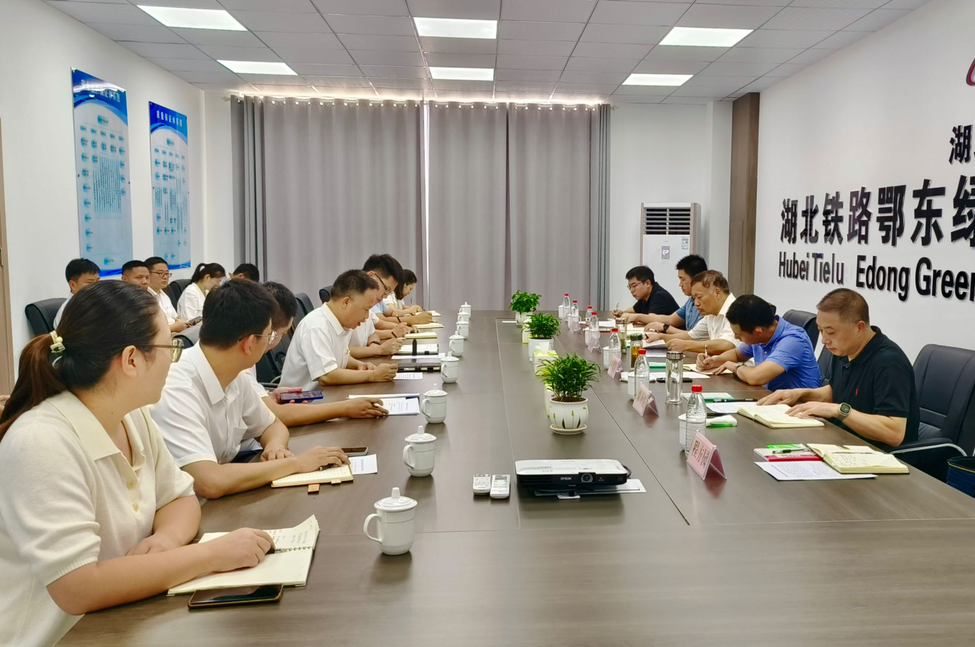 8月2日,湖北铁路集团党委副书记温森一行赴产业投资公司所属红安绿色矿山项目调研,看望慰问一线员工,帮助解决项目建设难题,并在产业公司党支部讲授专题党课。