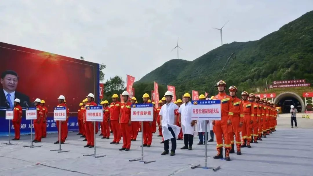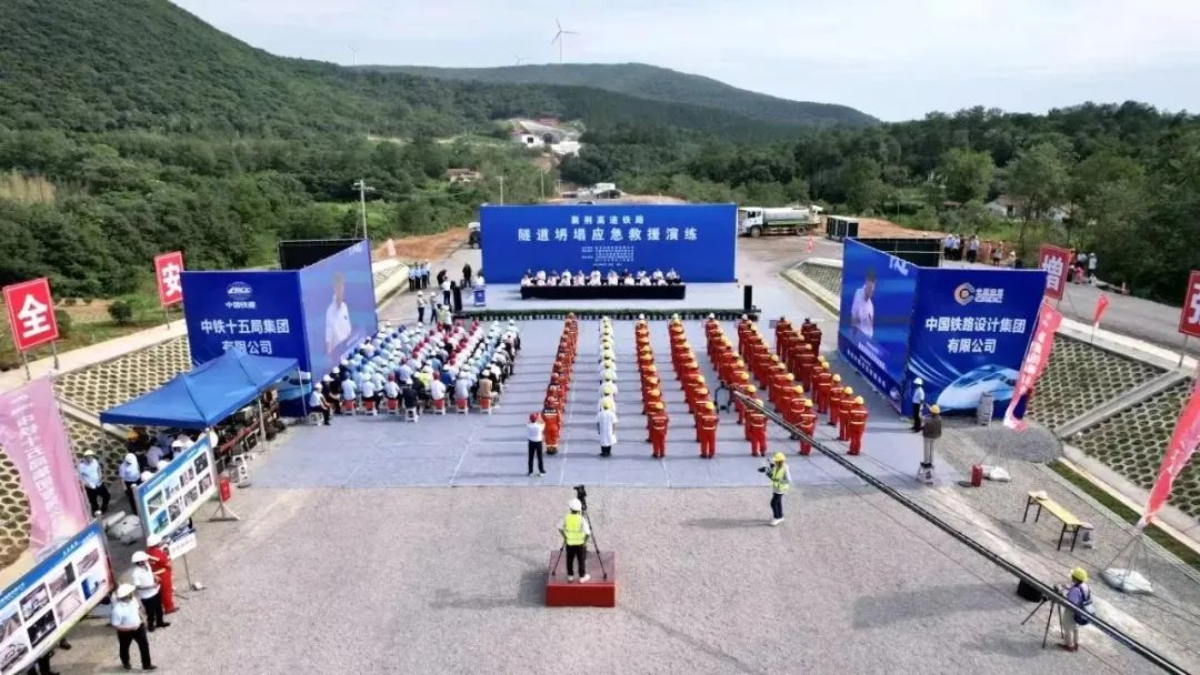 6月28日,湖北铁路集团在襄荆铁路项目现场举行了一场大规模隧道坍塌应急抢险救援演练,项目建设、消防、医护等单位100多人参加演练。集团党委书记、董事长朱国志,党委副书记、总经理黄镇出席演练活动。