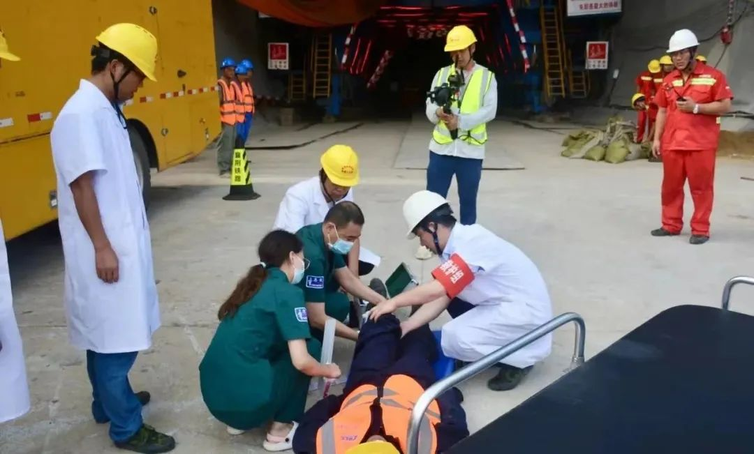 整个演练预设了襄荆铁路XJZQ-4标徐高岭隧道出口突发隧道坍塌、紧急救援被困工人的场景。在现场有序指挥下,安全警戒组、通讯联络组、技术保障组、物资设备组、抢险救援组、医疗救护组等各个小组迅速奔赴事故现场开展紧急救援。最终,成功救出被困人员,并送医检查、治疗。整个演练过程完全模拟真实场景,从发现险情、人员撤离到事故报告、应急响应、险情排查、科学研判、紧急施救等各个应急救援环节有条不紊,活动取得圆满成功。