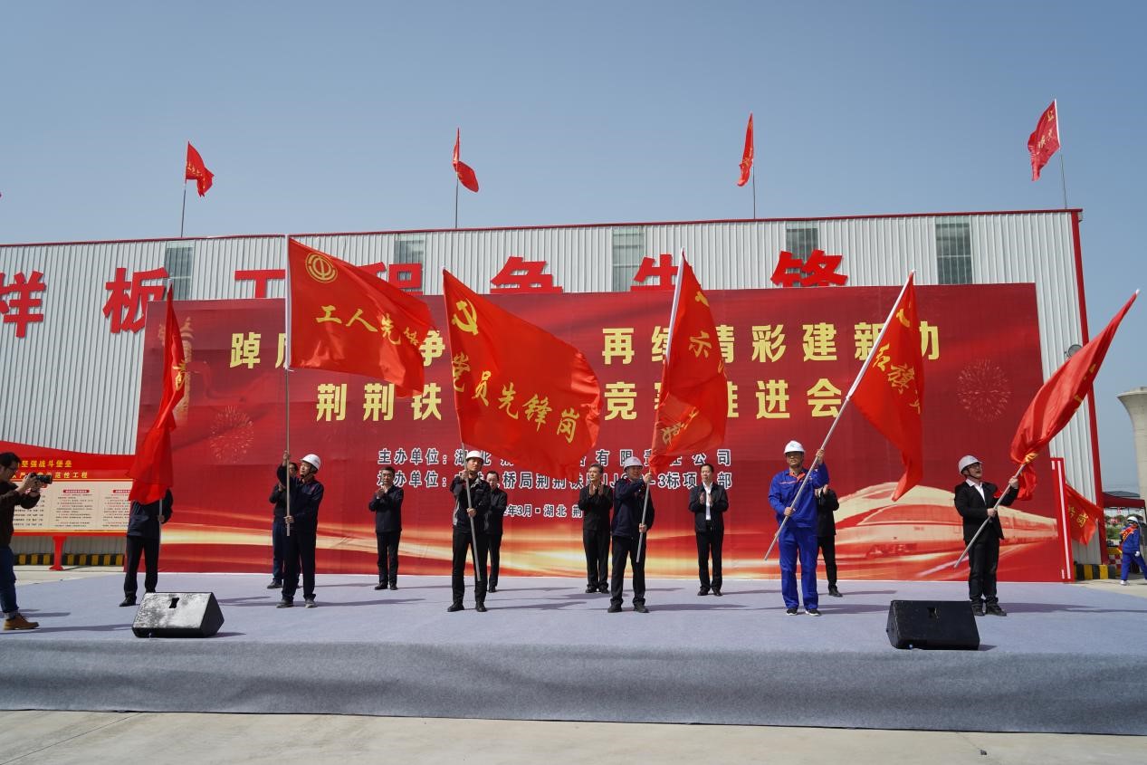 活动仪式上,与会领导分别为红旗责任区、党员先锋岗、党员示范岗、工人先锋号、青年突击队授旗。集团总工程师、荆荆公司党委书记、董事长杨明亮宣读了劳动竞赛活动方案,参建单位代表作了表态发言。