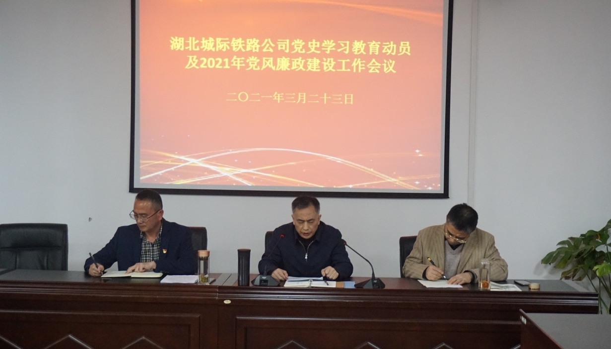 会议传达学习了习近平总书记在党史学习教育动员大会上的重要讲话精神、中纪委十九届五次全会精神,学习了应勇书记在全省党史学习教育动员大会的讲话和省纪委十一届五次全会精神,以及集团3月15日党史学习教育动员会暨党风廉政建设工作会议精神,对城际公司开展党史学习教育及2021年党风廉政建设工作进行安排部署。