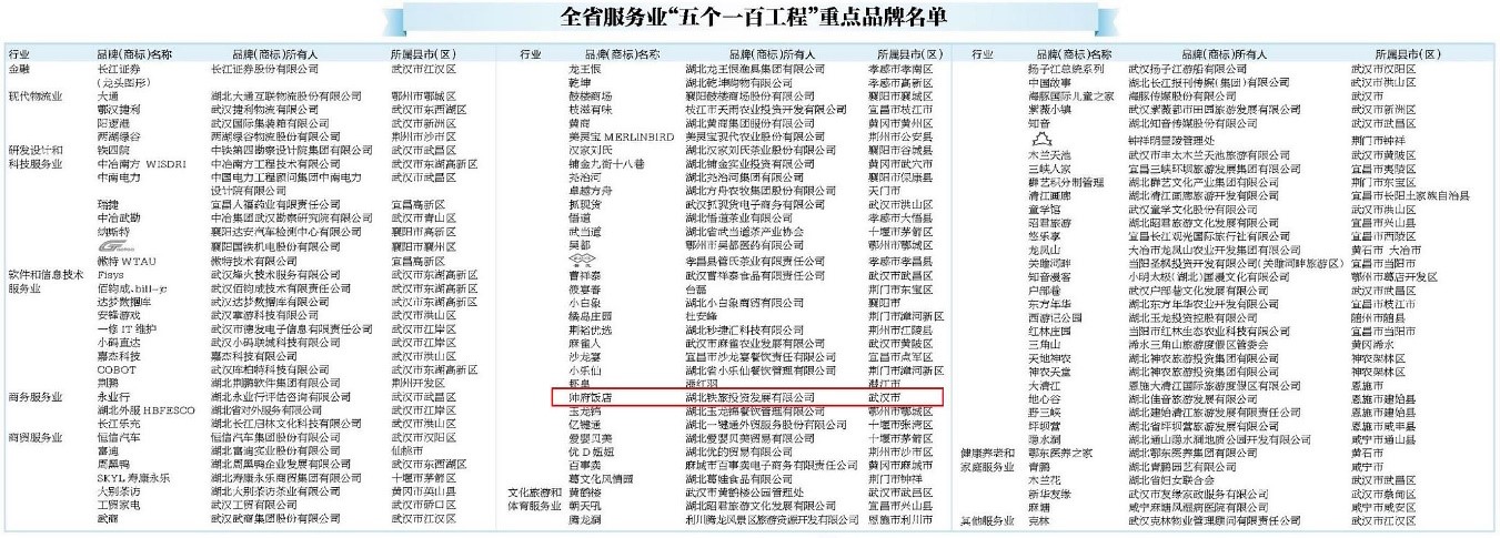 2020年10月14日,省服务业工作领导小组发布全省服务业“五个一百工程”重点企业、重点品牌、示范园区名单(鄂服务〔2020〕4号),铁投开发集团旗下“帅府”品牌荣获“百强品牌”称号。