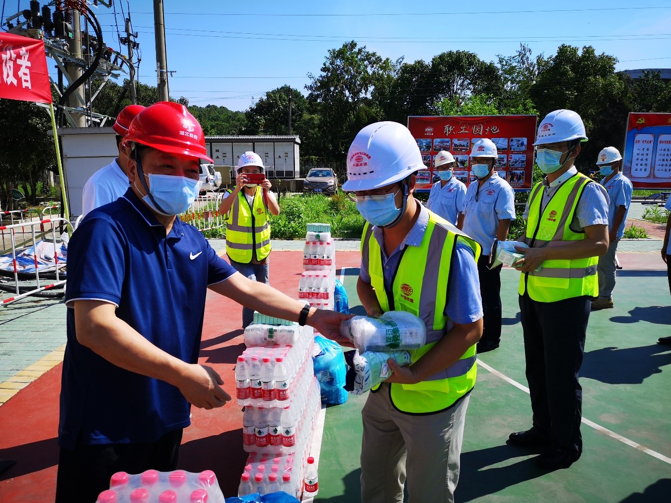 胡汉舟带队深入新港江北铁路引入京九铁路黄州站改工程施工现场,为正在施工的一线职工发放了防暑药品、矿泉水、绿茶、毛巾等防暑降温物品,把清凉送到了施工一线。