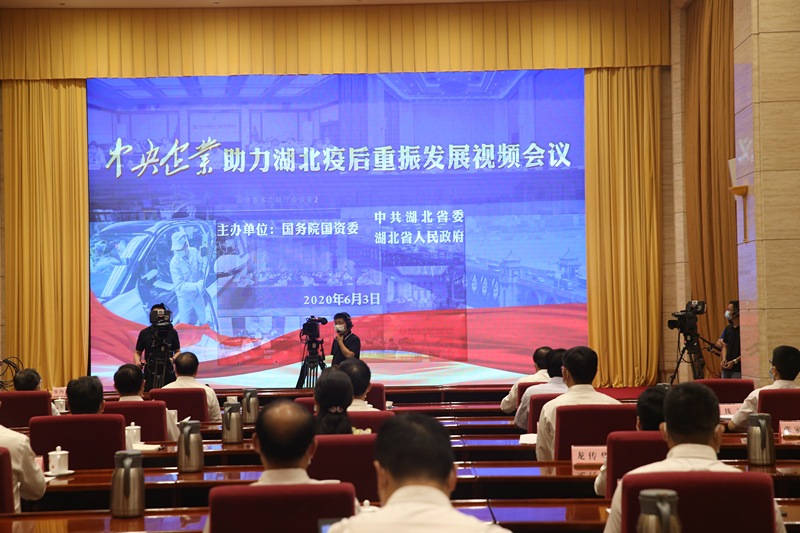6月3日,国务院国资委和湖北省委省政府共同召开中央企业助力湖北疫后重振发展视频会议。