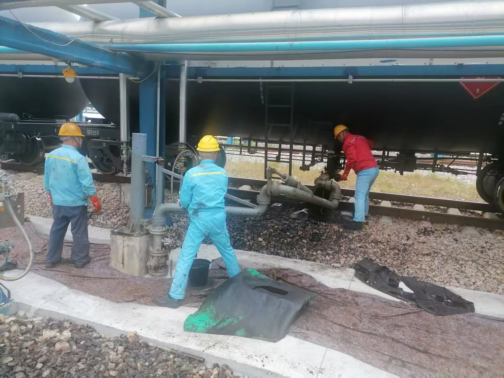国际联运公司员工坚守在吴家山中心站现场,对每一个即将启程的集装箱进行全方位“体检”,保障中亚班列运输安全。