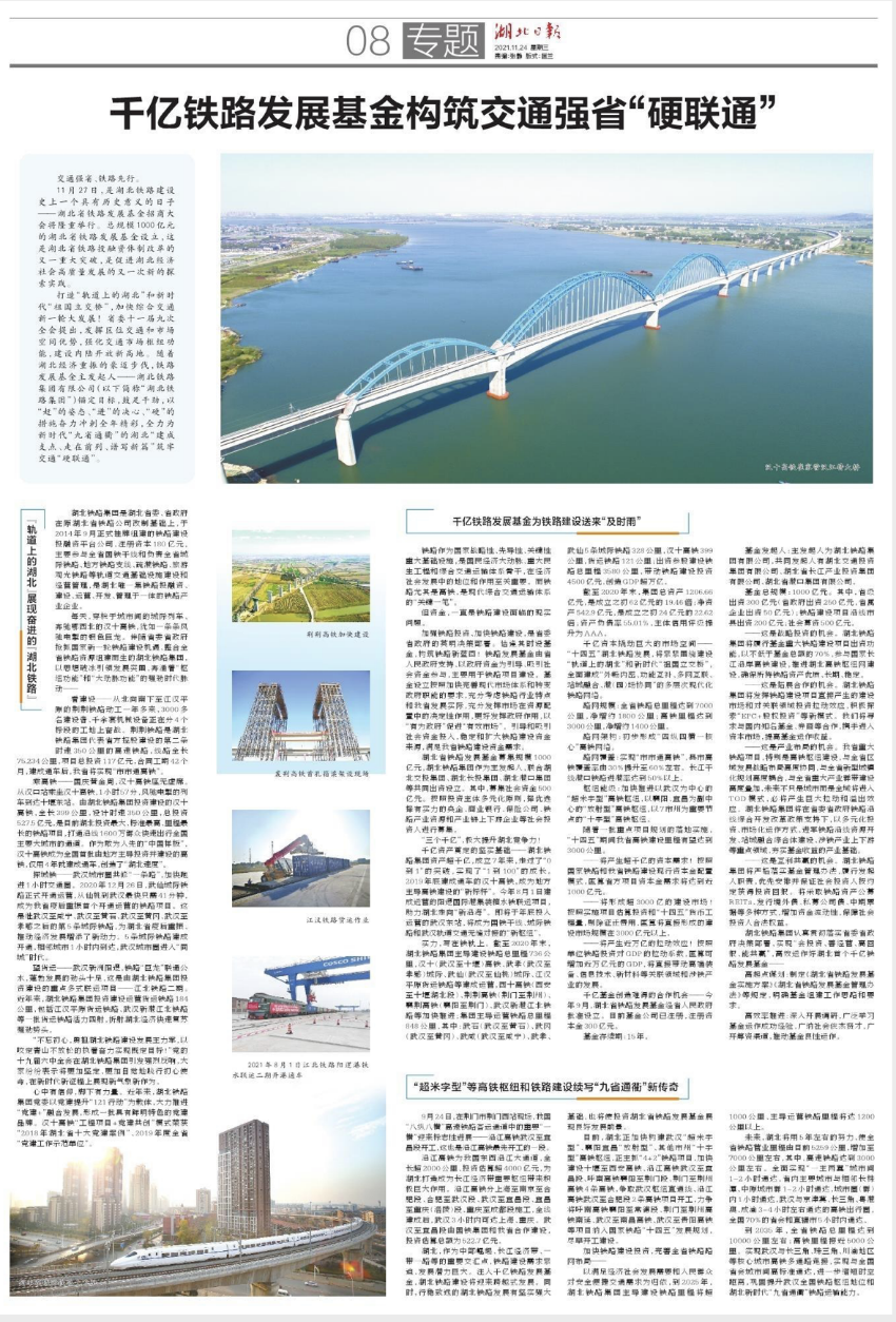 湖北铁路集团认真贯彻落实省委省政府决策部署,实现“会投资、善经营、高回报、能共赢”,高效运作好湖北首个千亿铁路发展基金——