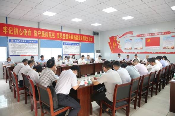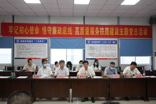 把主题党日活动开到项目,用清风护航铁路建设安全。9月11日下午,省发改委铁路建设处党支部、集团机关党支部和铁四院仙桃项目部党工委在汉沔铁路项目上联合开展“牢记初心使命、恪守廉政底线,高质量服务铁路建设”主题党日活动。省发改委一级巡视员董宏彬、铁路建设处党支部书记、处长刘宏,集团党委副书记马国其、党委委员、纪委书记章祖国,铁四院仙桃项目部党工委书记李仁斌以普通党员身份参加活动,活动由集团党委委员、副总经理高平主持。