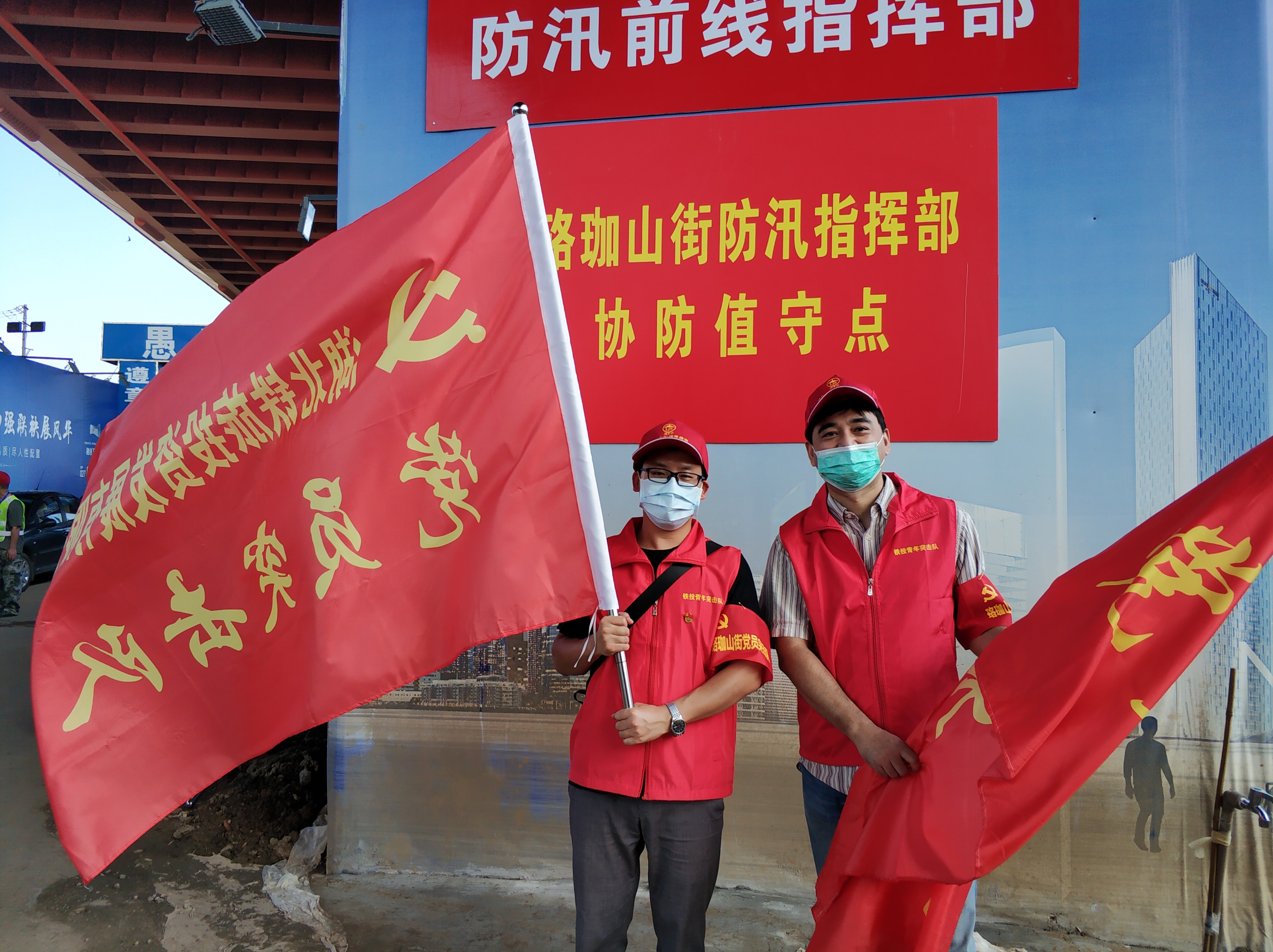 7月23日下午,珞珈山街区下沉党员代表在长江干堤鹦鹉洲大桥闸口处珞珈山街防汛指挥部协防值守点集结,成立珞珈山街区域化党建“珈联盟”党员防汛突击队。集团应急突击队副队长刘轶宇、队员刘满成作为突击队代表,参加珞珈山街党工委组织的“党员集结聚合力 筑牢防汛安全堤”党建“珈联盟”主题活动。重温入党誓词、作表态承诺,并接受防汛值班和应急值守专题培训。下一步将按照街防汛指挥部要求,全力参与值守巡堤查险工作。