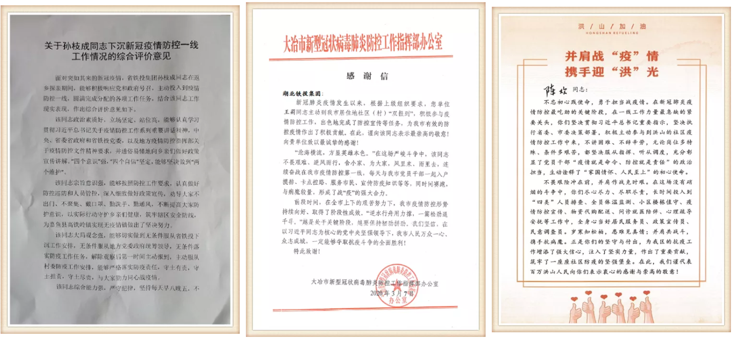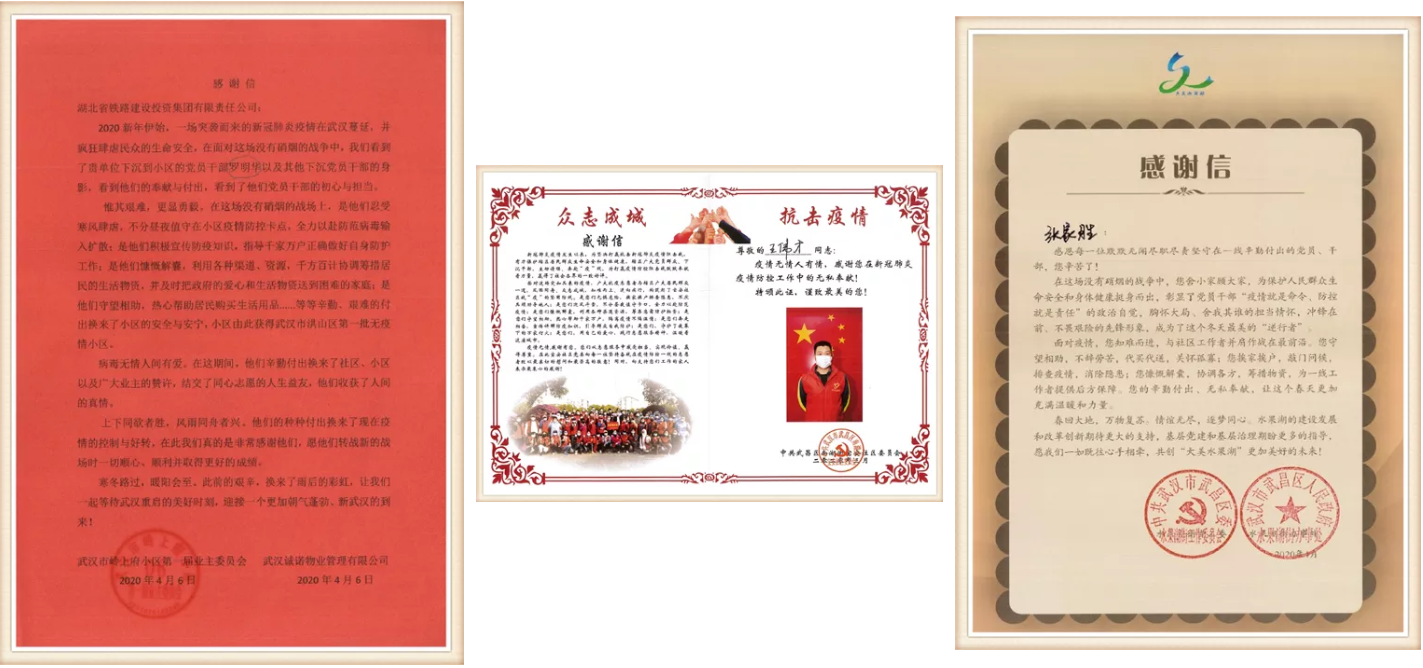 江汉春风起,冰霜昨夜除。随着疫情防控形势持续向好,复工复产加速推进,一封封来自社区的感谢信从四面八方云集铁投。这一张张饱含着社区居民浓浓谢意的感谢信,是荣誉、是认可和赞誉,更是湖北铁投人继续前行的动力。